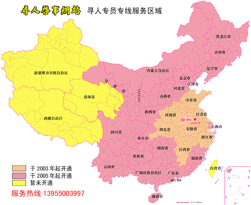 寻人启事网站寻人专员专线服务首期推出于2003年。当时的寻找服务地区为安徽省及安徽省周边省份。经过两年来的运作,我们积累了更加丰富的寻人经验。